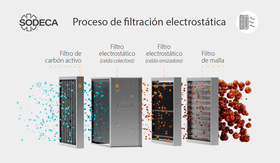 Uno de los elementos clave de estas soluciones es la incorporación de filtros electrostáticos de alta eficiencia, capaces de eliminar hasta el 95 % de grasas, humos y micropartículas presentes en el aire